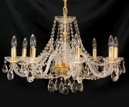 シャンデリア クリスタルガラス仕様チェーン吊り下げタイプ口径:E17 8灯 7kgGOLD色エレガントタイプ