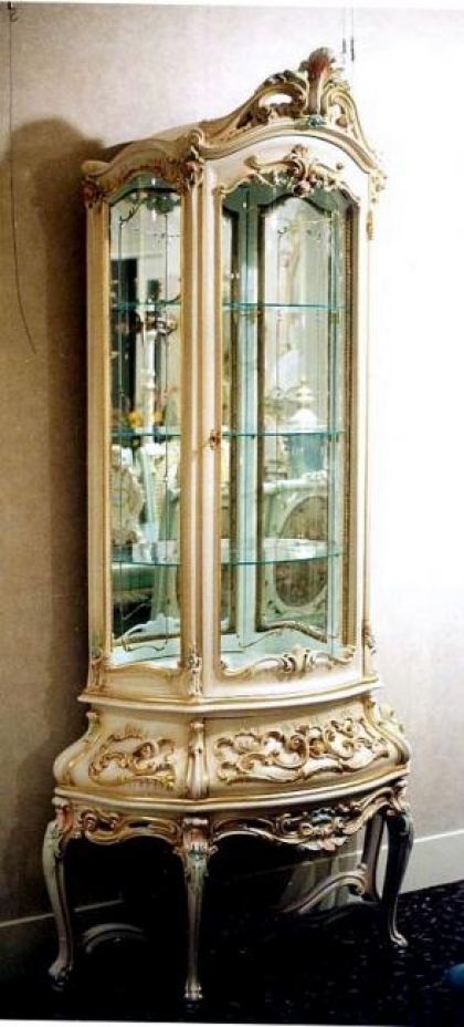 バロック、ロココ様式を昇華させたヴェネチアンスタイル家具です。デコラティブなデザインと優美な曲線、豪華な装飾、クラックレ仕上げ等がその美しさの源泉です。金箔を貼ったゴールドのシリーズはシンプルで気品あるリッチな家具です。