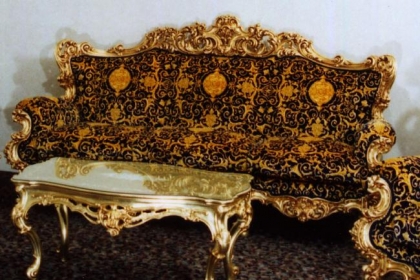 バロック、ロココ様式を昇華させたヴェネチアンスタイル家具です。デコラティブなデザインと優美な曲線、豪華な装飾、クラックレ仕上げ等がその美しさの源泉です。金箔を貼ったゴールドのシリーズはシンプルで気品あるリッチな家具です。