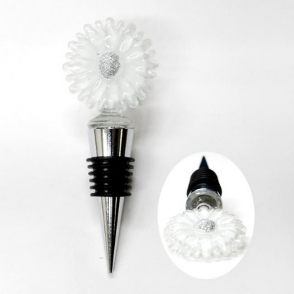 マーガレットの花がついたボトル栓です。ワインやミネラルウォーターにご利用できます。少し大人の雰囲気を醸し出しています。是非休日のひとときに華を添えます。