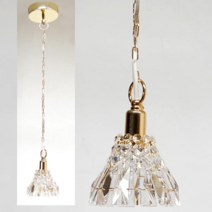 チェーン吊り下げタイプペンダント型口径:E17 1灯クリスタルガラス:ASFOURシェード:クリスタルガラス仕様ゴールド色*軽量のタイプです。