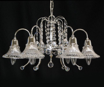 チェーン吊り下げタイプクリスタルガラス:ASFOURシェード:クリスタルガラスクローム色口径:E17 6灯 5kg