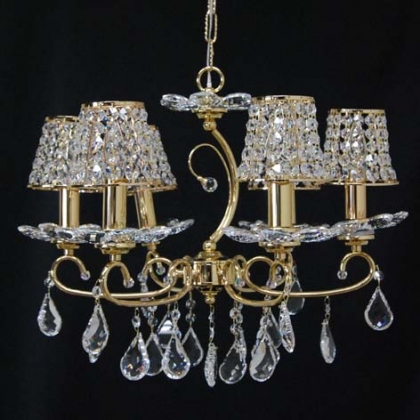 チェーン吊り下げタイプクリスタルガラス:ASFOURシェード:クリスタルガラスゴールド色口径:E17 6灯 8kg