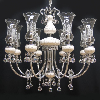 チェーン吊り下げタイプクリスタルガラス:ASFOUR口径:E17 8灯 10kgクローム色シェード:ガラス