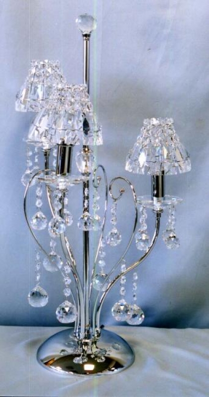 テーブルランプ(スタンドランプ)口径:E17 3灯 10Kgクリスタルガラス:ASFOURクローム色シェード:クリスタルガラス