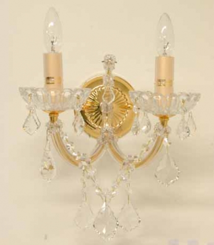 ウォールランプ(ブラケット)口径:E17 2灯 2kgクリスタルガラス仕様ゴールド色