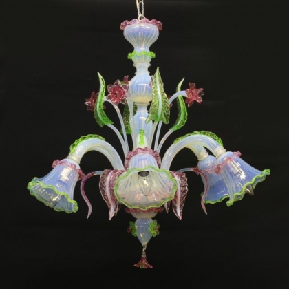 イタリア製シャンデリアイタリア ベネチアンガラスガラス:MURANOカラー:ピンク・グリーン口径:E14 6灯LUXURY LIGHTING