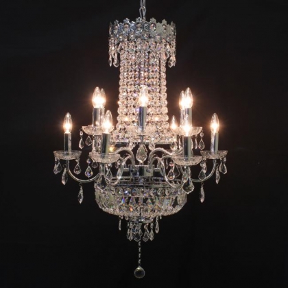 チェーン吊り下げタイプクリスタルガラス:ASFOUR口径:E17 12灯 13kgシルバー色