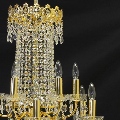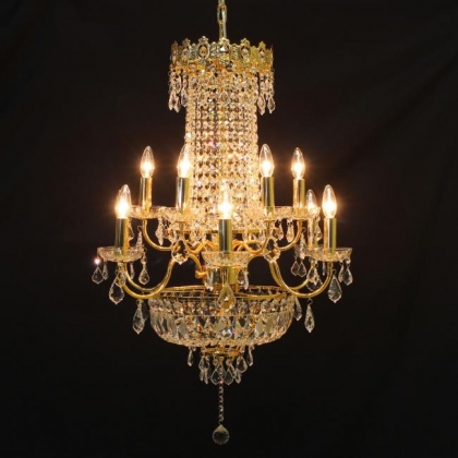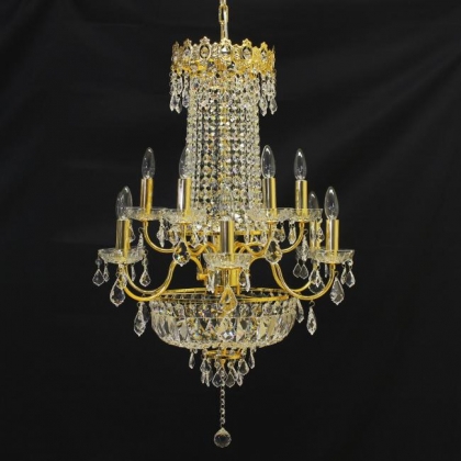 チェーン吊り下げタイプクリスタルガラス:ASFOUR口径:E17 12灯 13kgゴールド色
