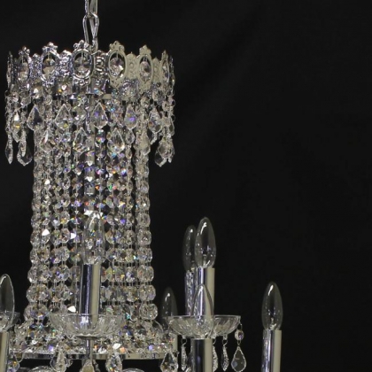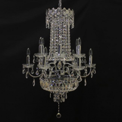 チェーン吊り下げタイプクリスタルガラス:ASFOUR口径:E17 12灯 13kgシルバー色
