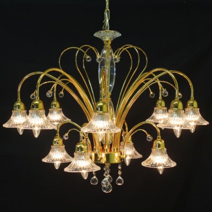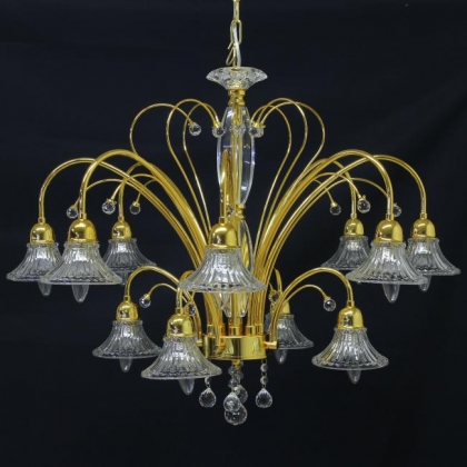 チェーン吊り下げタイプクリスタルガラス:ASFOUR口径:E17 12灯 12kgゴールド色シェード:クリスタルガラス