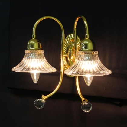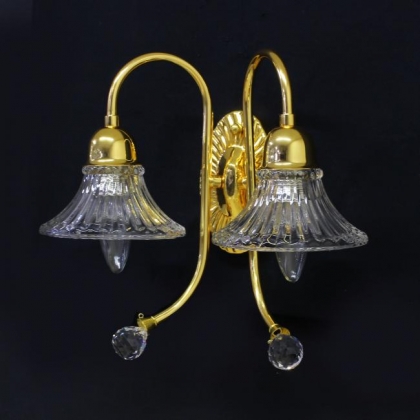 ウォールランプ(ブラケット)口径:E17 2灯 2kgクリスタルガラス:ASFOURシェード:クリスタルガラスゴールド色