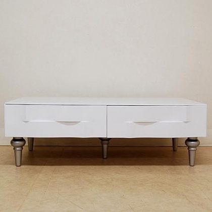 センターテーブル(リビングテーブル)引出付きホワイト鏡面塗装