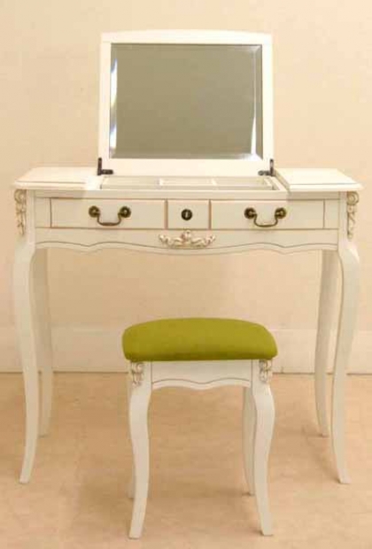 ホワイト塗装ジュエリー用棚ありスツール付き*引出は開きません。取っ手はデザインです。