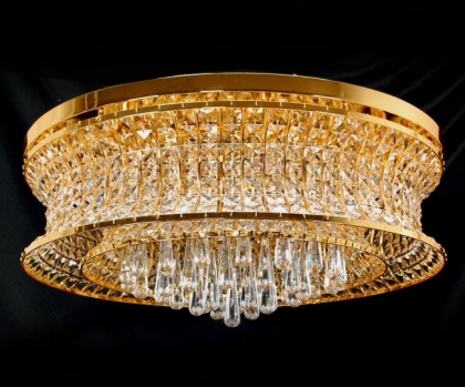 シャンデリア(シーリング仕様) クリスタルガラス仕様 天井直付けタイプ 口径:G9 ハロゲン 14灯 15kg ゴールド色 モダンタイプ