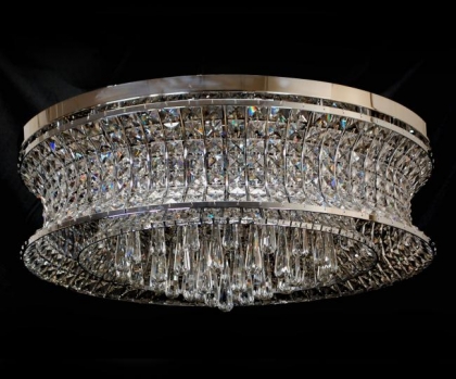 シャンデリア(シーリング仕様) クリスタルガラス仕様 天井直付けタイプ 口径:G9 ハロゲン 14灯 15kg シルバー色(CHROME) モダンタイプ