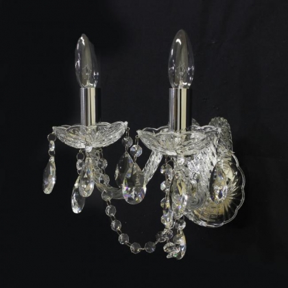 ブラケット(ウォールランプ) クリスタルガラス仕様 壁面取り付け仕様 口径:E17 2灯 2kg SILVER色 エレガントタイプ