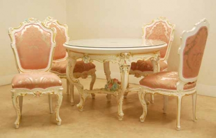 バロック、ロココ様式を昇華させたヴェネチアンスタイル家具です。デコラティブなデザインと優美な曲線、豪華な装飾、クラックレ仕上げ等がその美しさの源泉です。金箔を貼ったゴールドのシリーズはシンプルで気品あるリッチな家具です。