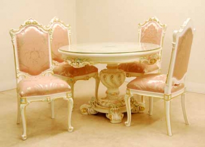 バロック、ロココ様式を昇華させたヴェネチアンスタイル家具です。デコラティブなデザインと優美な曲線、豪華な装飾、クラックレ仕上げ等がその美しさの源泉です。金箔を貼ったゴールドのシリーズはシンプルで気品あるリッチな家具です。