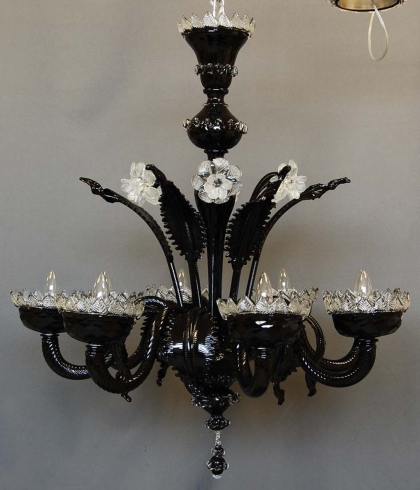 イタリア製シャンデリアイタリア ベネチアンガラスガラス:MURANOカラー:ブラック仕上げ口径:E14 8灯LUXURY LIGHTING