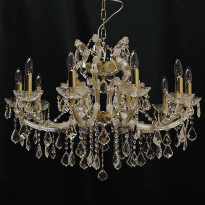 クリスタルガラス仕様:ASFOUR チェーン吊り下げタイプ ゴールド色 口径:E17 10灯 18kg
