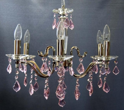 クリスタルガラス仕様:ASFOUR チェーン吊り下げタイプ シルバー色 口径:E17 6灯 7kg カラークリスタル:ピンク色