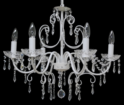 クリスタルガラス仕様チェーン吊り下げタイプホワイト色口径:E17 6灯 4kg
