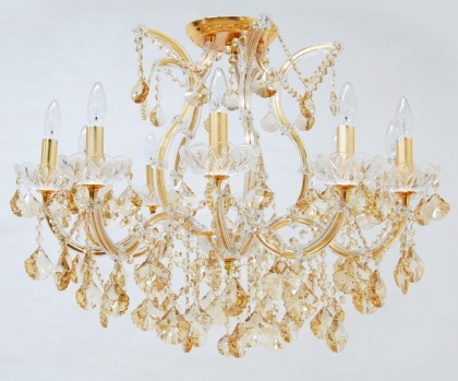 クリスタルガラス仕様カラー:アンバー色口径:E17 10灯 17kgゴールド:マット仕上げシーリングタイプ*クリスタルガラスがアンバー色(琥珀色)になっています。*天井高が低い際に最適なタイプです。