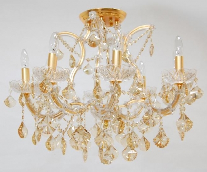 クリスタルガラス仕様カラー:アンバー色口径:E17 8灯 11kgゴールド:マット仕上げシーリングタイプ*クリスタルガラスがアンバー色(琥珀色)になっています。*天井高が低い際に最適なタイプです。