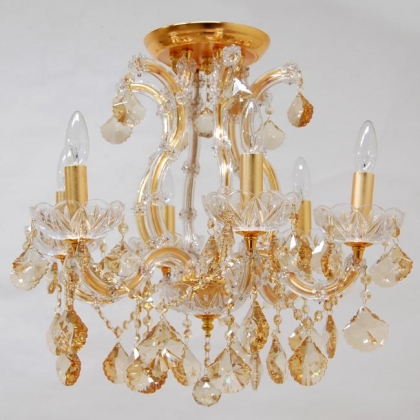 クリスタルガラス仕様カラー:アンバー色口径:E17 6灯 9kgゴールド:マット仕上げシーリングタイプ*クリスタルガラスがアンバー色(琥珀色)になっています。*天井高が低い際に最適なタイプです。