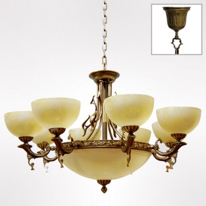 マーブルストーン仕上げ ブロンズ調仕上げ 口径:E26 11灯 重さ:15kg チェーン吊り下げタイプ シャンデリア ガラスシェード