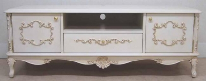 ホワイト塗装仕上げ猫足タイプ左右開き戸タイプ配線コード用穴開き済