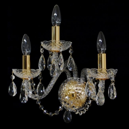 ブラケット(ウォールランプ)クリスタルガラス仕様壁面取り付け仕様口径:E17 3灯 3kgGOLD色エレガントタイプ