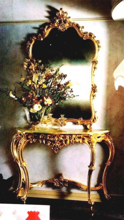 バロック、ロココ様式を昇華させたヴェネチアンスタイル家具です。デコラティブなデザインと優美な曲線、豪華な装飾、クラックレ仕上げ等がその美しさの源泉です。金箔を貼ったゴールドのシリーズはシンプルで気品あるリッチな家具です。