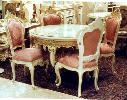 バロック、ロココ様式を昇華させたヴェネチアンスタイル家具です。デコラティブなデザインと優美な曲線、豪華な装飾、クラックレ仕上げ等がその美しさの源泉です。金箔を貼ったゴールドのシリーズはシンプルで気品あるリッチな家具です。
