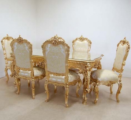 バロック、ロココ様式を昇華させたヴェネチアンスタイル家具です。デコラティブなデザインと優美な曲線、豪華な装飾、クラックレ仕上げ等がその美しさの源泉です。金箔を貼ったゴールドのシリーズはシンプルで気品あるリッチな家具です。