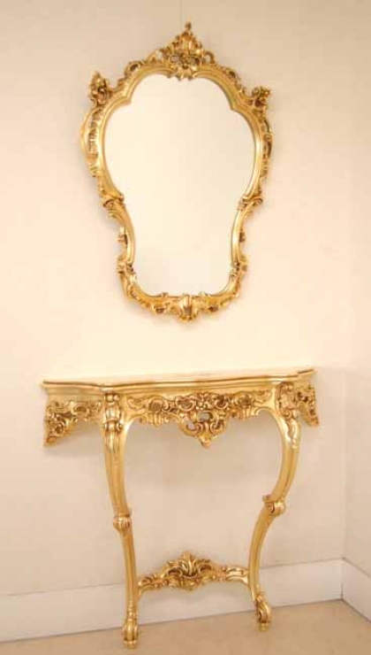 バロック、ロココ様式を昇華させたヴェネチアンスタイル家具です。デコラティブなデザインと優美な曲線、豪華な装飾、クラックレ仕上げ等がその美しさの源泉です。金箔を貼ったゴールドのシリーズはシンプルで気品あるリッチな家具です。