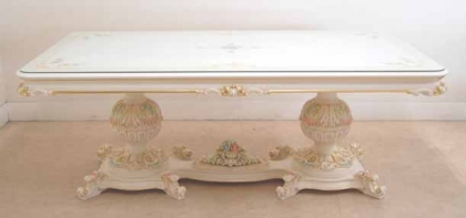 バロック、ロココ様式を昇華させたヴェネチアンスタイル家具です。デコラティブなデザインと優美な曲線、豪華な装飾、クラックレ仕上げ等がその美しさの源泉です。金箔を貼ったゴールドのシリーズはシンプルで気品あるリッチな家具です。