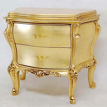 バロック、ロココ様式を昇華させたヴェネチアンスタイル家具です。デコラティブなデザインと優美な曲線、豪華な装飾、クラックレ仕上げ等がその美しさの源泉です。金箔を貼ったゴールドのシリーズはシンプルで気品あるリッチな家具です。
