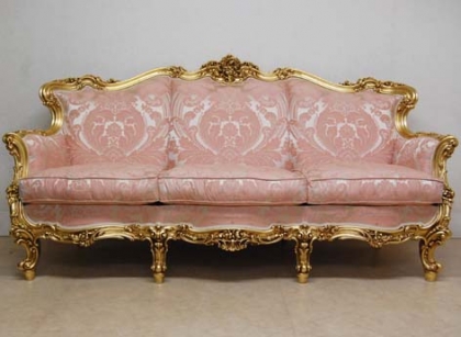 バロック、ロココ様式を昇華させたヴェネチアンスタイル家具です。デコラティブなデザインと優美な曲線、豪華な装飾、クラックレ仕上げ等がその美しさの源泉です。金箔を貼ったゴールドのシリーズはシンプルで気品あるリッチな家具です。