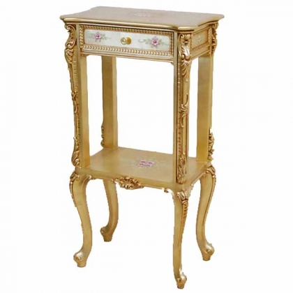 バロック、ロココ様式を昇華させたヴェネチアンスタイル家具です。デコラティブなデザインと優美な曲線、豪華な装飾、クラックレ仕上げ等がその美しさの源泉です。金箔を貼ったゴールドのシリーズはシンプルで気品あるリッチな家具です。