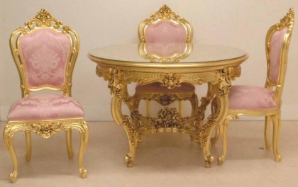 バロック、ロココ様式を昇華させたヴェネチアンスタイル家具です。デコラティブなデザインと優美な曲線、豪華な装飾、クラックレ仕上げ等がその美しさの源泉です。金箔を貼ったゴールドのシリーズはシンプルで気品あるリッチな家具です。
