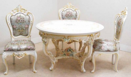 バロック、ロココ様式を昇華させたヴェネチアンスタイル家具です。デコラティブなデザインと優美な曲線、豪華な装飾、クラックレ仕上げ等がその美しさの源泉です。金箔を貼ったゴールドのシリーズはシンプルで気品あるリッチな家具です。