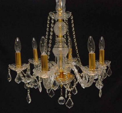 クリスタルガラス仕様チェーン吊り下げタイプゴールド色口径:E17 6灯 5kg