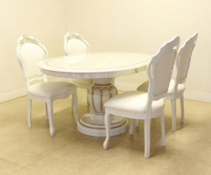 ダイニング5点セット。Φ110pの円形型です。延長式の為、最大148pの楕円型としても使えます。