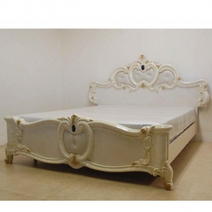 イタリア製ベッド Qサイズアイボリーホワイト鏡面仕上げシリーズ:BAROCCO IVORY*マットレス付き 160X200cm