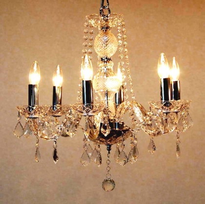 クリスタルガラス仕様チェーン吊り下げタイプシルバー色口径:E17 6灯 4kg