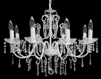 クリスタルガラス仕様チェーン吊り下げタイプホワイト色口径:E17 8灯 4kg