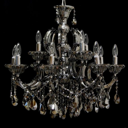 チェーン吊り下げタイプクリスタルガラス仕様着色カラー:ブラック色口径:E17 12灯重さ:13kg