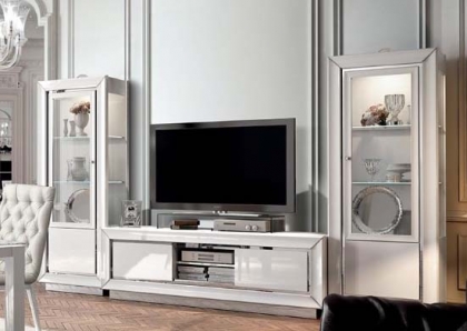イタリア製TVボードMODUM COLLECTIONシリーズ:DAMA BIANCA DAY 色:ホワイト鏡面ピアノ仕上げモダンスタイリッシュな仕上げです。